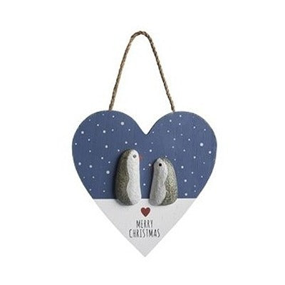 Each of these pebbles in hand painted to turn them into adorable penguins. Totally unique, as no two are the same. Mounted on a wooden heart with 'Merry Christmas' text, it makes a cute gift for any penguin fan.