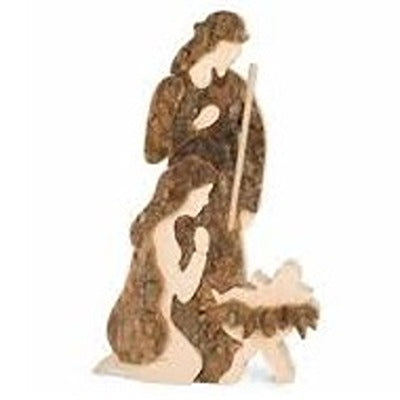Bark and plain wood depict the adoring parents. Exquisite wood work.