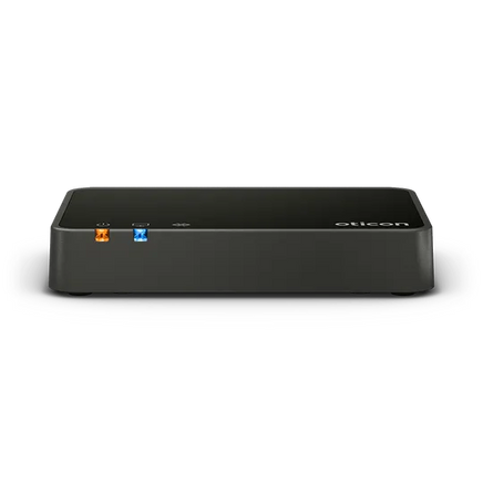 The Oticon TV Adapter for Oticon Hearing Aids provides effortless sound streaming from your TV straight into your Oticon hearing aids. The wireless Oticon streaming device helps you hear TV audio more clearly without background noise. With personalised audio, you can set the volume to a level you like without disturbing others. This TV adapter is super simple to install and easy to use, and never needs charging.